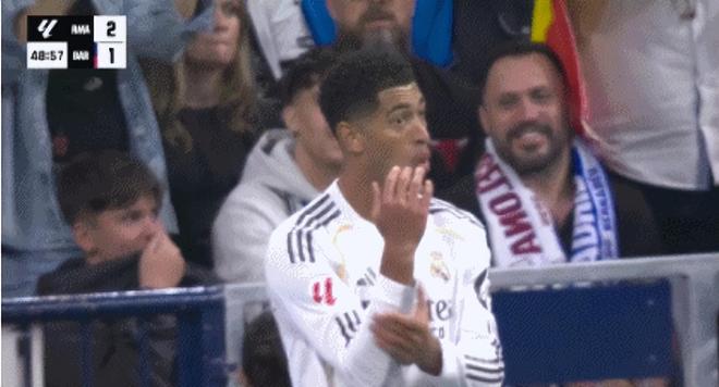 不过很快伯纳乌就再次给到了反击,这次是皇马新思路的“正向”方面了,如果居莱尔在熟悉时失误了,那贝林就是在这个模式下新生了。他后套上接到了队友的摆渡后,射门成功,助皇马拿到了2-1的优势。破门之后他的霸气庆祝也是足够经典,这的确很“贝林”!