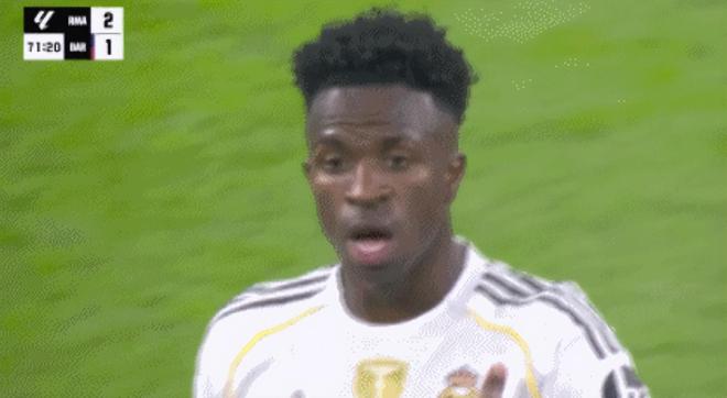 开场2分钟,维尼修斯就通过自己盘带来到了禁区,跟亚马尔接触后被裁判给到了点球。然而,在VAR重看后,裁判决定推翻自己的判罚称这不是个犯规的。